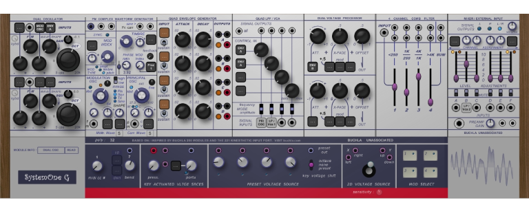 KBPlugs – SystemOne G is an emulated Buchla 200 series.